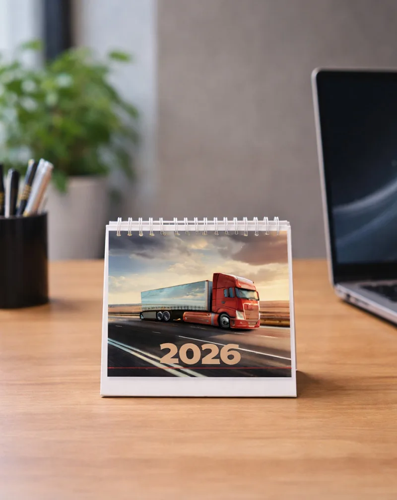 Rodzaj kalendarza: nasz kalendarz dostępny jest w wersji spiralowanej. Ma on podstawę, która jest bigowana od spodu, a górna część z kalendarium jest łączona za pomocą srebrnej spirali. Kalendarze są dostarczane już złożone, wystarczy tylko delikatnie zagiąć podstawę od spodu w miejscu bigowania i postawić na biurku.