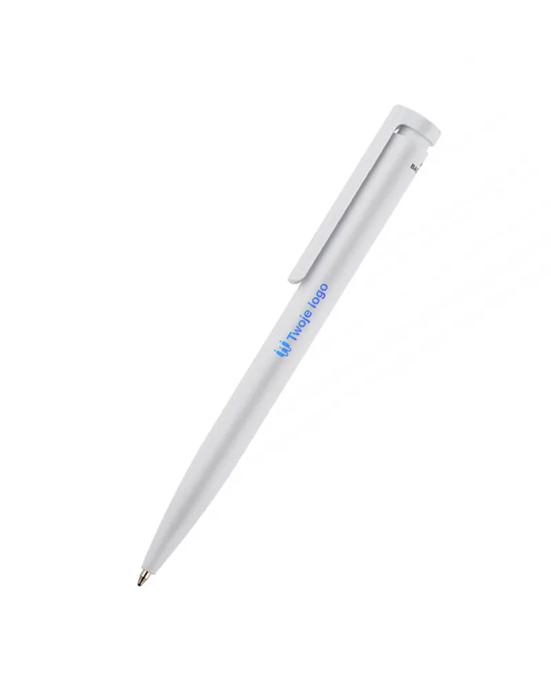 Klasyczna biała obudowa i niebieski wkład podkreślają uniwersalny charakter długopisu, który doskonale wpisuje się zarówno w profesjonalne środowisko pracy, jak i codzienne użytkowanie.