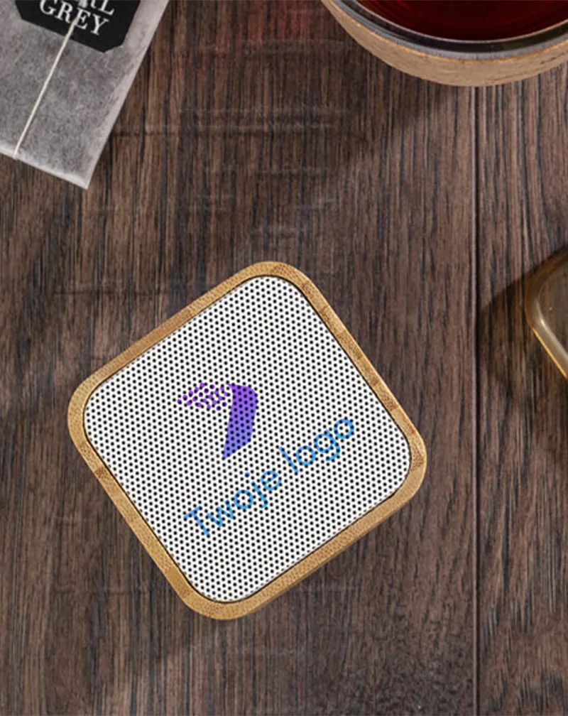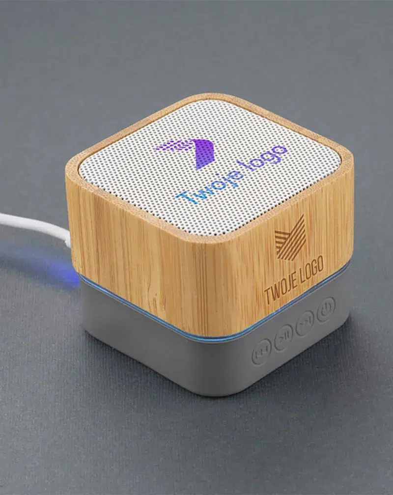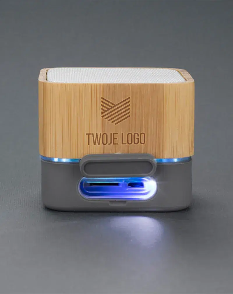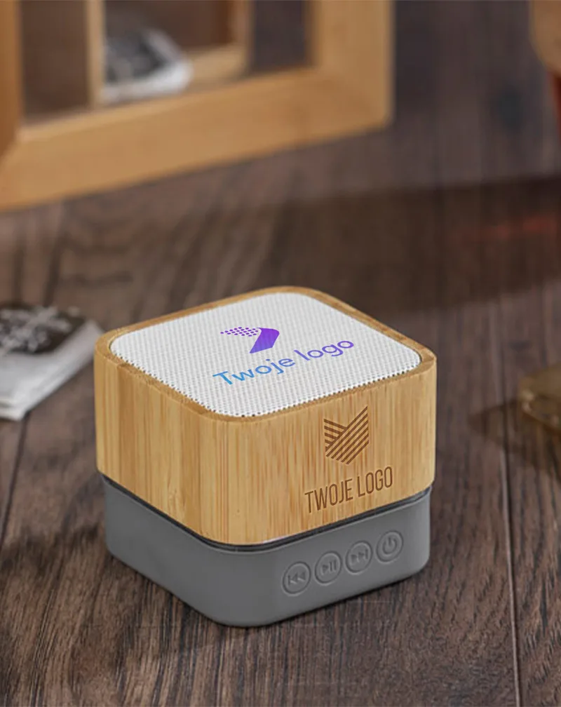 Głośnik GROOVE to doskonała propozycja także dla firm szukających unikalnych i funkcjonalnych gadżetów reklamowych lub akcesoriów do biura. Jego elegancki wygląd, łączący bambus i silikon, sprawia, że wyróżnia się na tle tradycyjnych produktów. Dodatkowo, możliwość personalizacji głośnika (np. poprzez nadruk logo firmy) sprawia, że staje się on świetnym narzędziem marketingowym, które pozostaje w pamięci Twoich klientów i pracowników.