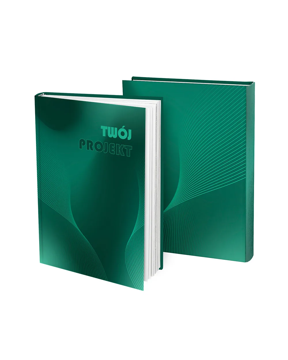 - Uszlachetnienie okładki: Folia błysk, folia mat, folia soft touch lub folia mat + lakier UV