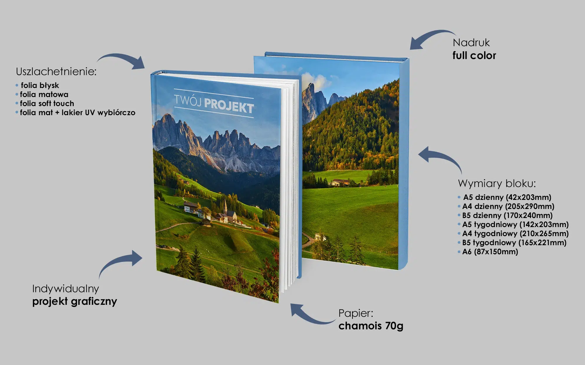 Kalendarz książkowy z indywidualnie drukowaną oprawą