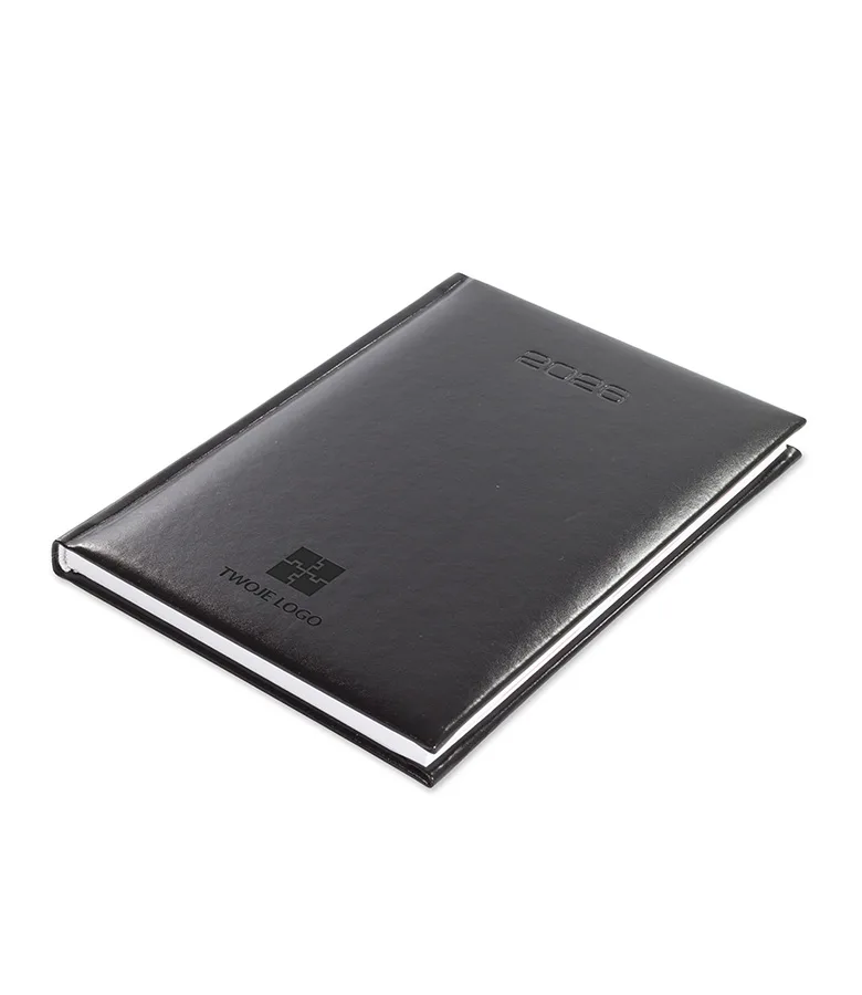 Kalendarz książkowy Avila   B5 z logo  to  model kalendarza z oprawą ze  skóropodobnego, gładkiego, błyszczącego materiału. Oprawa  jest nieobszyta.