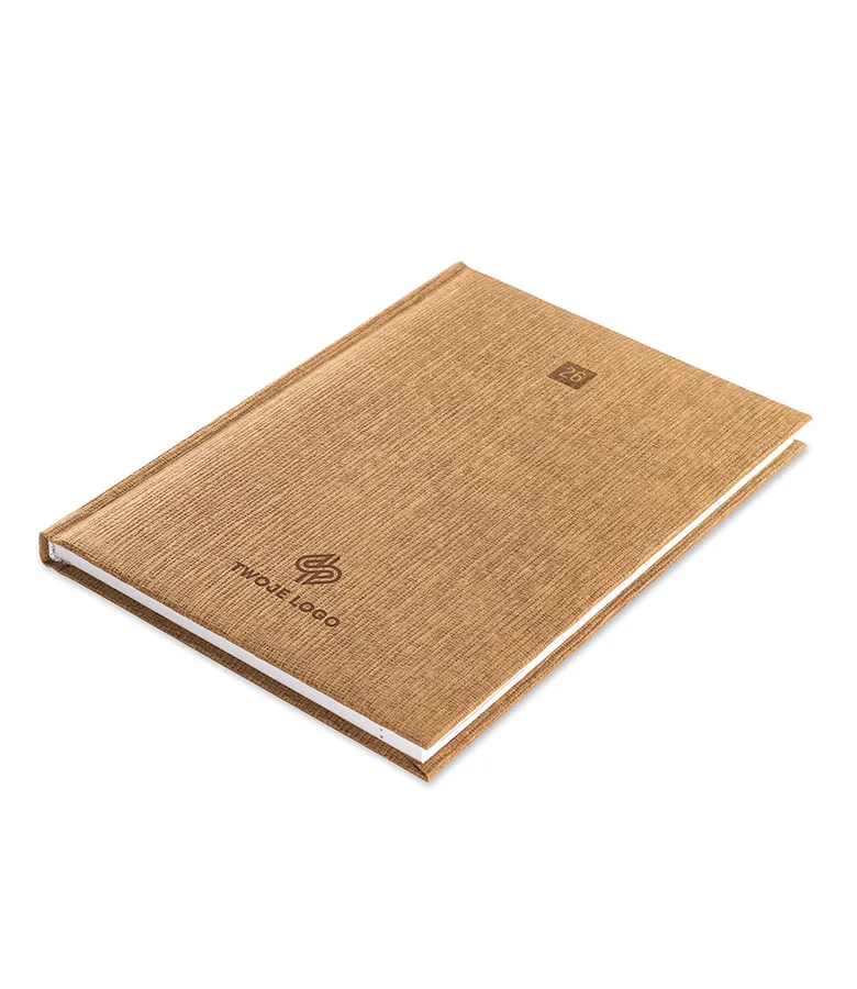 Kalendarz książkowy Bambu B5 z logo to model kalendarza z oprawą z materiału o strukturze bambusa. Oprawa jest nieobszyta