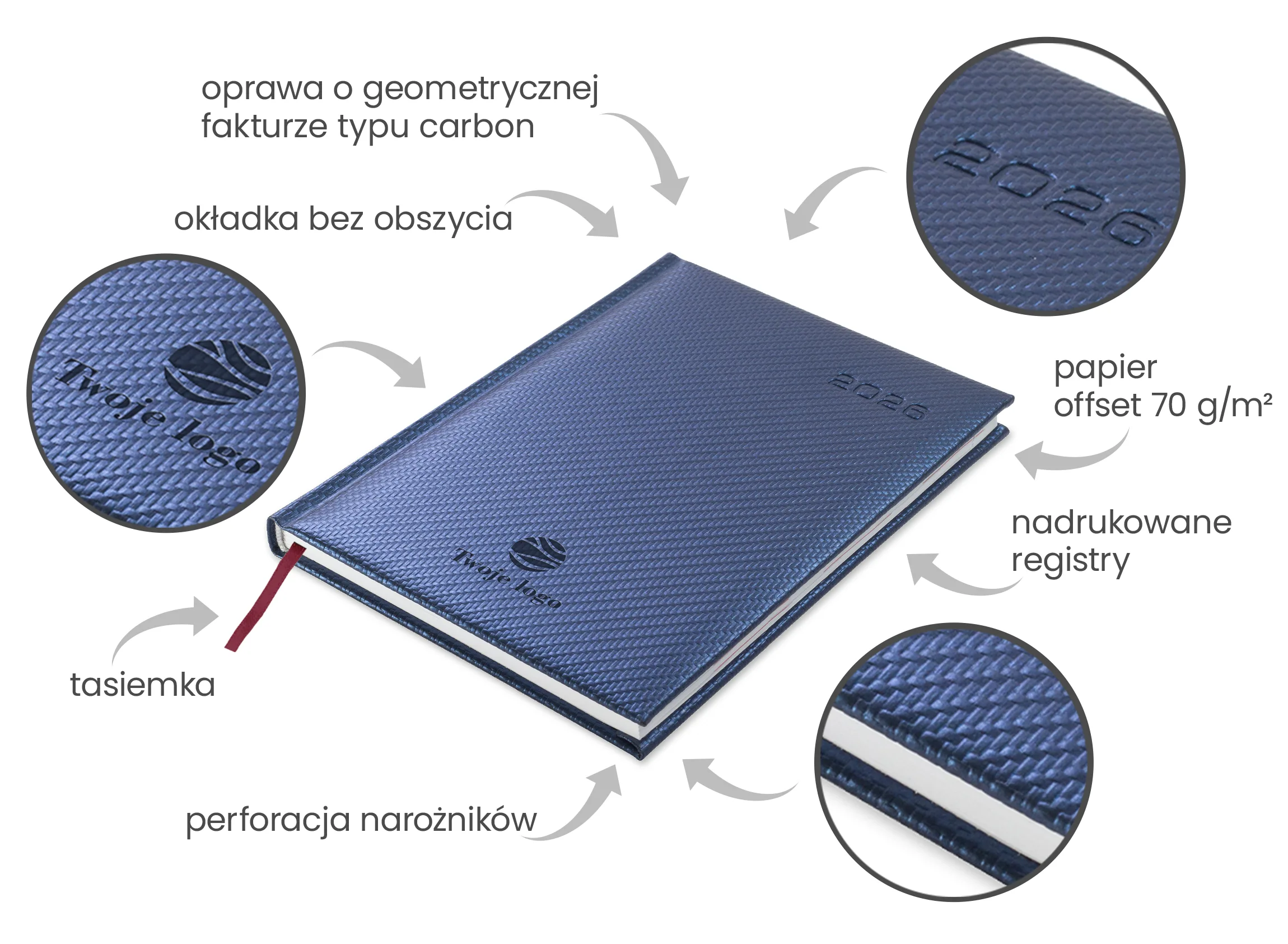 Kalendarz książkowy to nie tylko doskonałe narzędzie do organizacji czasu, planowania i zapisywania codziennych zadań, ale także estetyczny dodatek do Twojego biura czy domu. Zdecydowanie zwiększa on produktywność planowania oraz działania. Dodatkowo dzięki opcji personalizacji logo kalendarze są doskonałą formą całorocznej reklamy, możesz podarować je swoim kontrahentom, partnerom biznesowym, klientom oraz pracownikom. Sprawdzi się również jako podarunek na święta. Jego funkcjonalność i staranne wykonanie sprawią, że będziesz z niego zadowolony przez cały rok! ✨