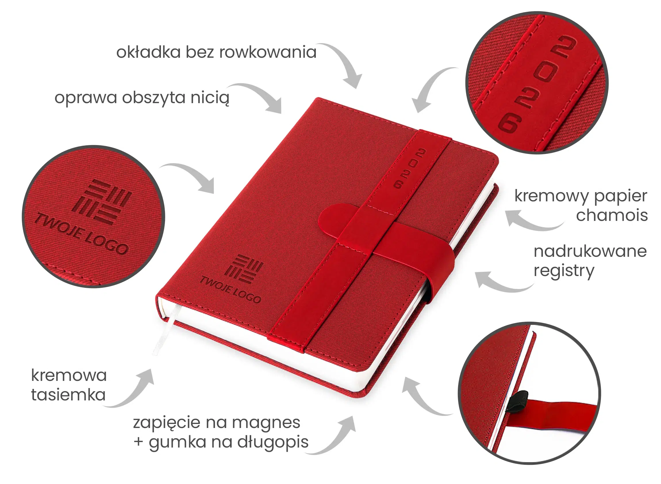 Kalendarz książkowy to nie tylko doskonałe narzędzie do organizacji czasu, planowania i zapisywania codziennych zadań, ale także estetyczny dodatek do Twojego biura czy domu. Zdecydowanie zwiększa on produktywność planowania oraz działania. Dodatkowo dzięki opcji personalizacji logo kalendarze są doskonałą formą całorocznej reklamy, możesz podarować je swoim kontrahentom, partnerom biznesowym, klientom oraz pracownikom. Sprawdzi się również jako podarunek na święta. Jego funkcjonalność i staranne wykonanie sprawią, że będziesz z niego zadowolony przez cały rok! ✨