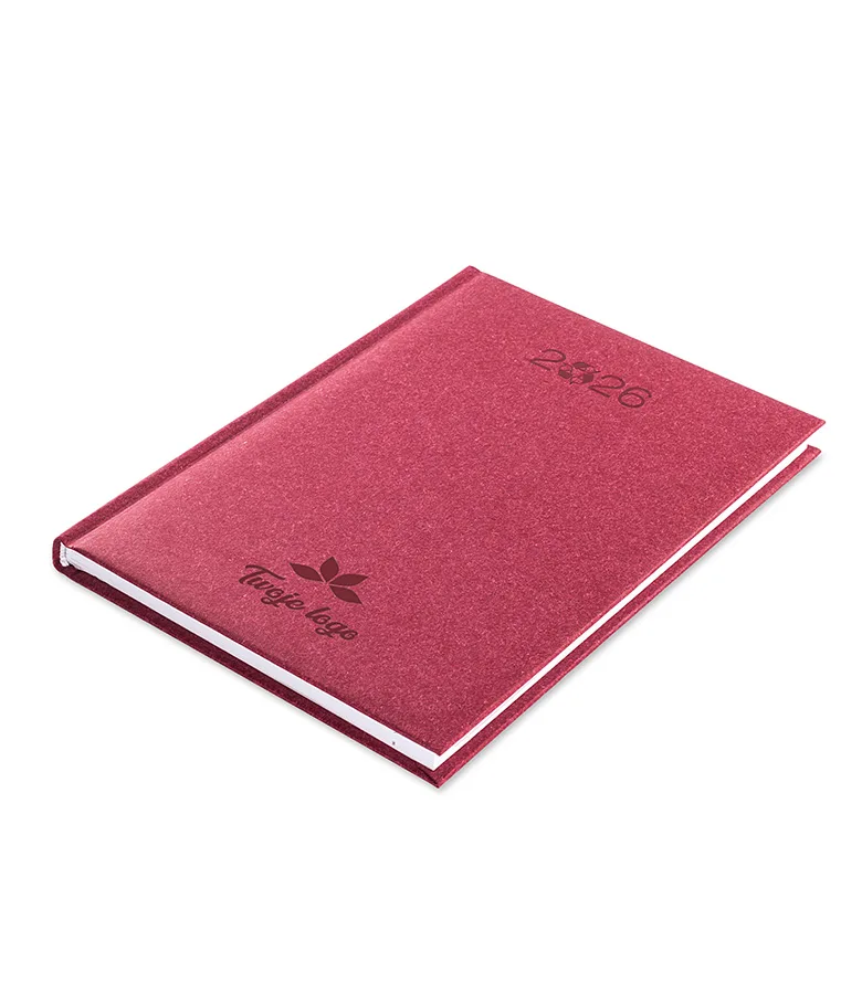 Kalendarz książkowy Bergamo A5 z logo to oprawa z mocnego papieru termoprzebarwialnego o ciekawej „włosowatej” teksturze.