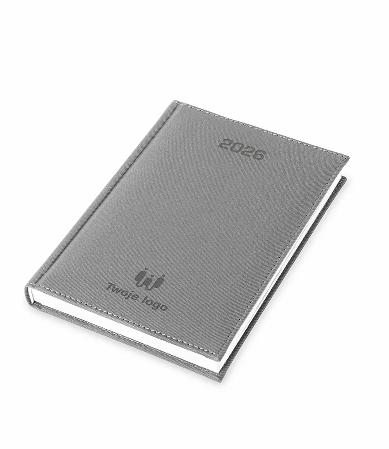 Kalendarz książkowy Denim A5 z logo to oprawa imitująca jeans dostępna w 10 kolorach to nowoczesny zwrot w projektowaniu kalendarzy. Ten kalendarz książkowy zachwyca nie tylko swoją funkcjonalnością, ale i niepowtarzalnym stylem. Wyposażony w wytłoczoną datę na okładce oraz proste narożniki, jest praktyczny i stylowy.