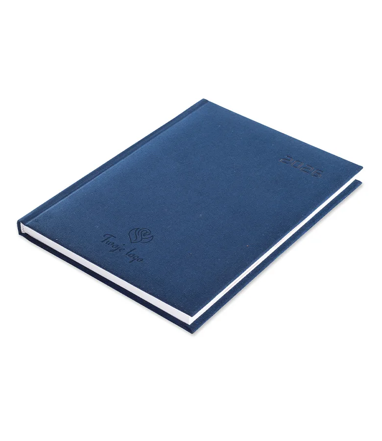 Kalendarz książkowy Fogia A5 z logo to model kalendarza z oprawą wiernie imitującą zamsz, niezwykle miękką i miłą w dotyku. Oprawa  jest nieobszyta.