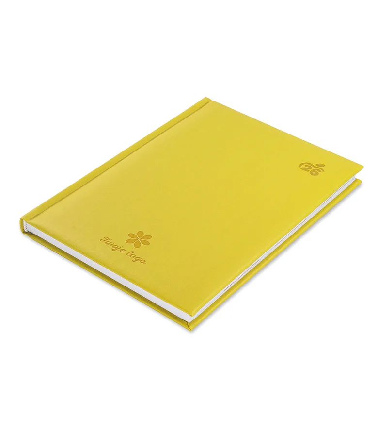 Kalendarz książkowy Lagos A5 z logo to model kalendarza z miękką oprawą o matowym wykończeniu, powstałą dzięki przetworzeniu pozostałości z jabłek.