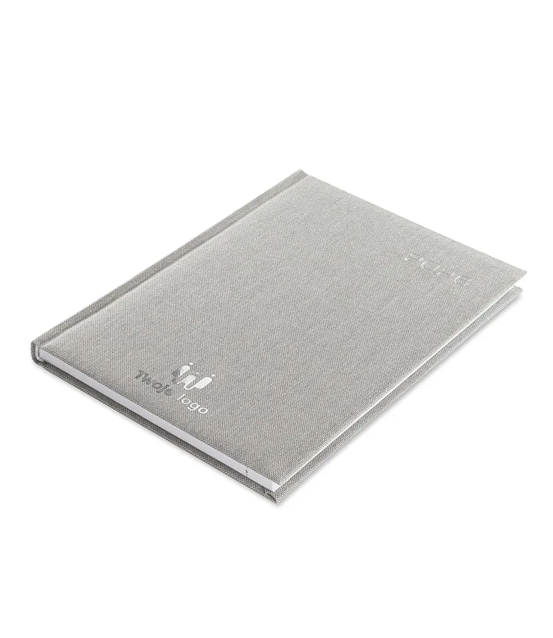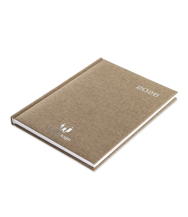 Kalendarz książkowy Lens   A4 z logo  to oprawa  charakteryzująca się wyjątkową strukturą przypominającą lniane płótno, co nadaje jej wyrazisty artystyczny i naturalny charakter