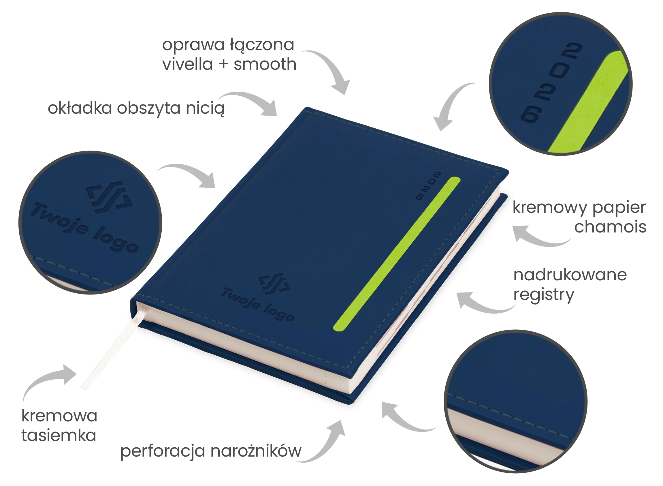 Kalendarz książkowy to nie tylko doskonałe narzędzie do organizacji czasu, planowania i zapisywania codziennych zadań, ale także estetyczny dodatek do Twojego biura czy domu. Zdecydowanie zwiększa on produktywność planowania oraz działania. Dodatkowo dzięki opcji personalizacji logo kalendarze są doskonałą formą całorocznej reklamy, możesz podarować je swoim kontrahentom, partnerom biznesowym, klientom oraz pracownikom. Sprawdzi się również jako podarunek na święta. Jego funkcjonalność i staranne wykonanie sprawią, że będziesz z niego zadowolony przez cały rok! ✨