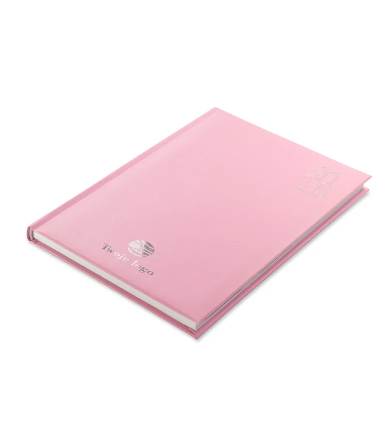 Kalendarz książkowy Malibu A5 z logo to oprawa, która posiada wyjątkowo gładką powierzchnię, podkreśloną zastosowaniem pastelowego zestawu kolorystycznego. Znakowanie folią metaliczną pozwala zachować prostotę i piękno delikatnej natury tego materiału. Tłoczenie tylko foliami metalizowanymi.