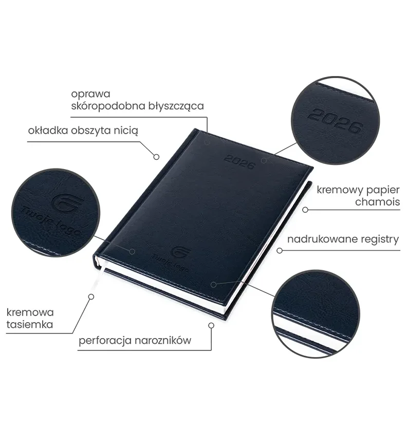 Kalendarz książkowy to nie tylko doskonałe narzędzie do organizacji czasu, planowania i zapisywania codziennych zadań, ale także estetyczny dodatek do Twojego biura czy domu. Zdecydowanie zwiększa on produktywność planowania oraz działania. Dodatkowo dzięki opcji personalizacji logo kalendarze są doskonałą formą całorocznej reklamy, możesz podarować je swoim kontrahentom, partnerom biznesowym, klientom oraz pracownikom. Sprawdzi się również jako podarunek na święta. Jego funkcjonalność i staranne wykonanie sprawią, że będziesz z niego zadowolony przez cały rok! ✨