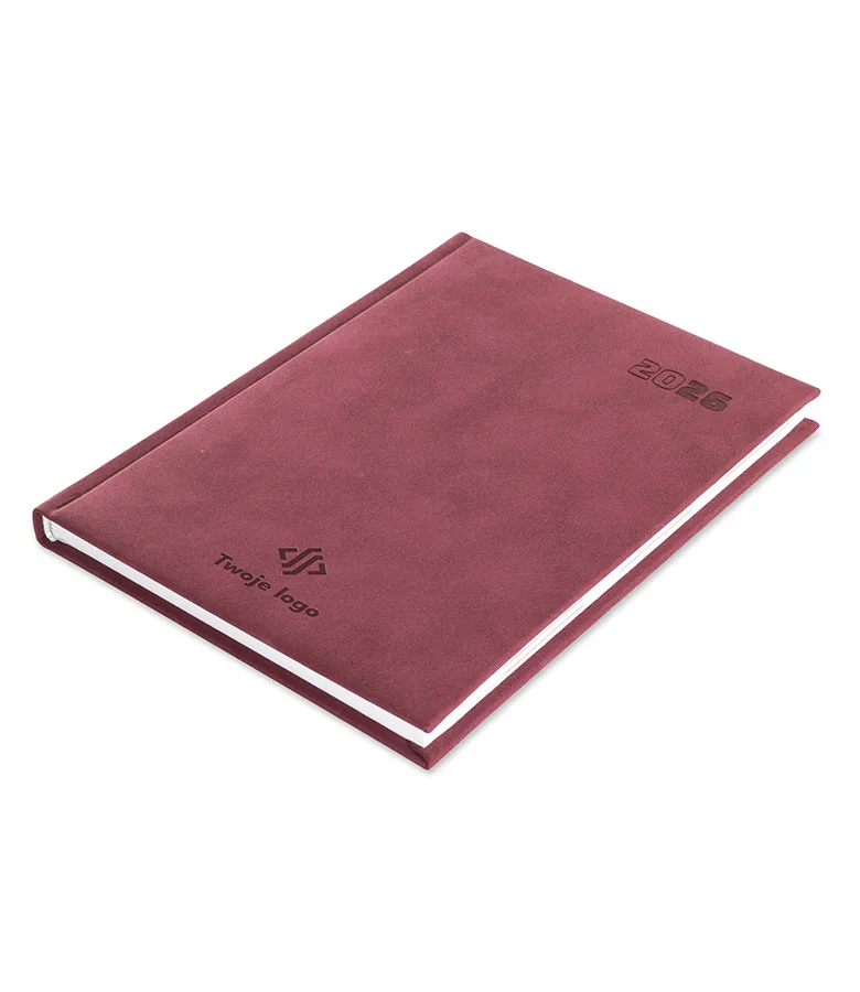 Kalendarz książkowy Nubuk A4 z logo to to bardzo miękka, puszysta oprawa imitująca nubuk. Oprawa  jest nieobszyta.
