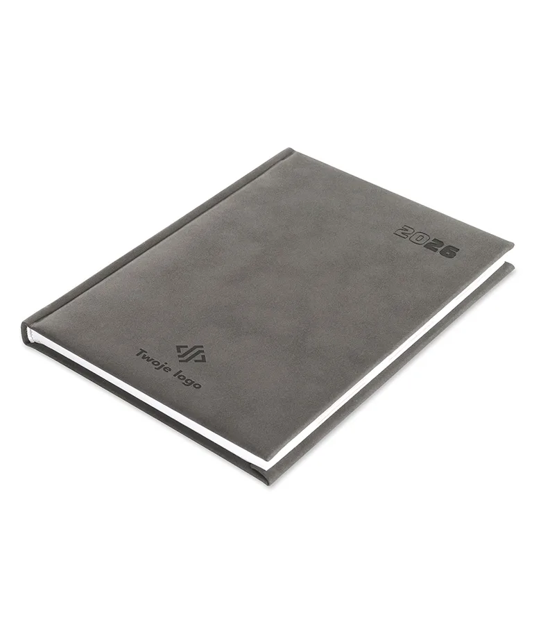 Kalendarz książkowy Nubuk B5 z logo to to bardzo miękka, puszysta oprawa imitująca nubuk. Oprawa  jest nieobszyta.