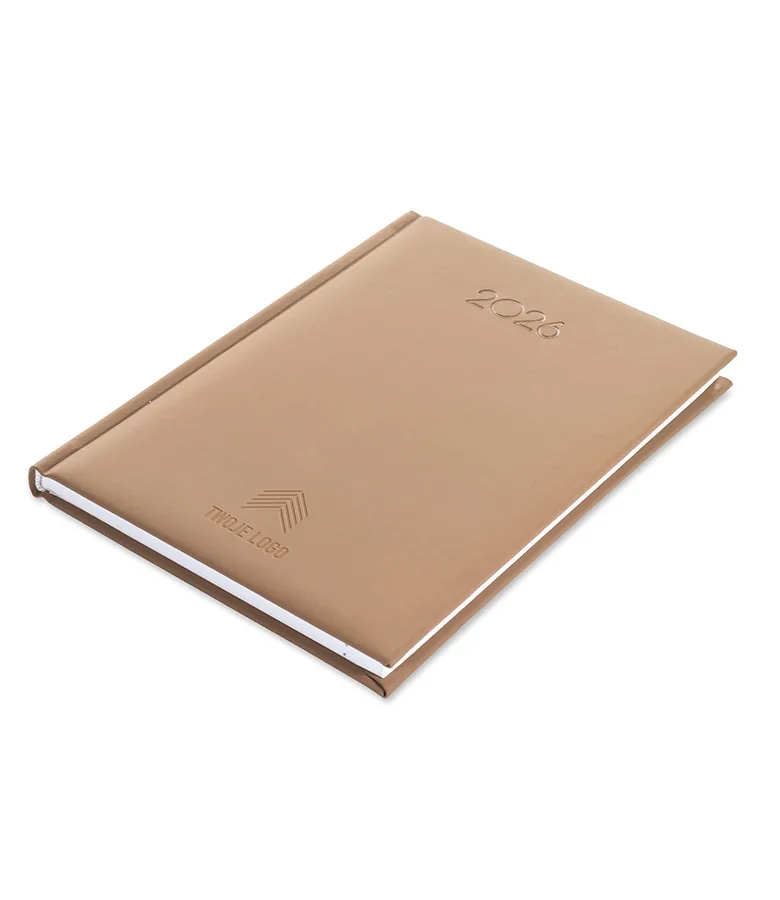 Kalendarz książkowy Osaka A4 z logo to model kalendarza z to model kalendarza z miękką i gładką oprawą o jednolitej powierzchni. Oprawa jest nieobszyta.