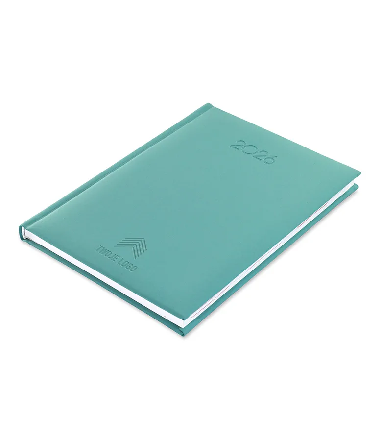 Kalendarz książkowy Osaka A5 z logo to model kalendarza z to model kalendarza z miękką i gładką oprawą o jednolitej powierzchni. Oprawa jest nieobszyta.
