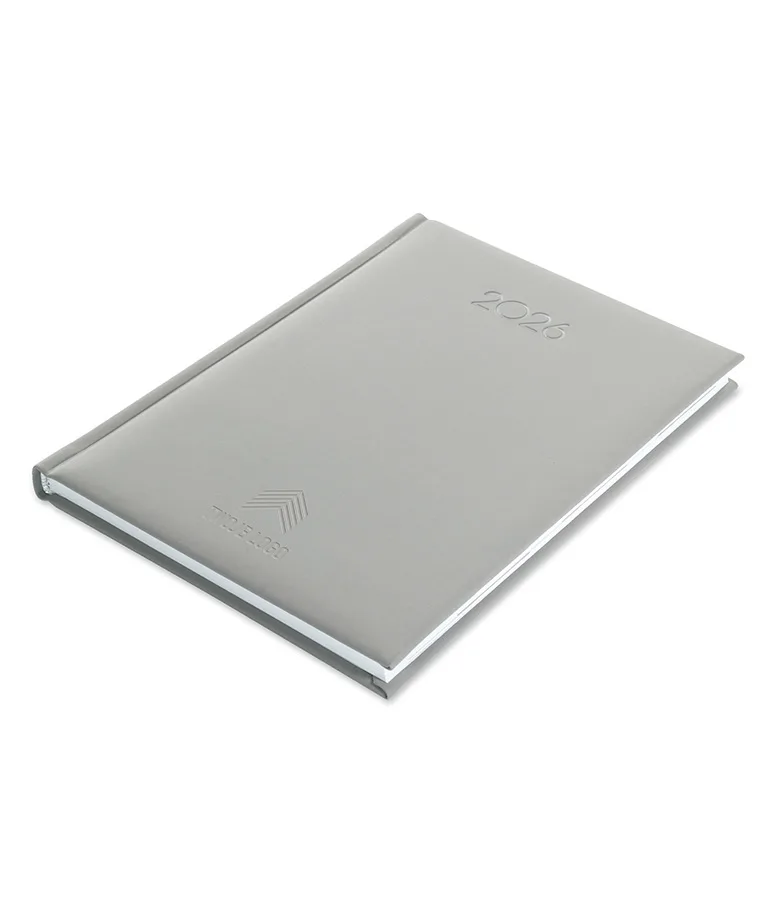 Kalendarz książkowy Osaka A5 z logo to model kalendarza z to model kalendarza z miękką i gładką oprawą o jednolitej powierzchni. Oprawa  jest nieobszyta.
