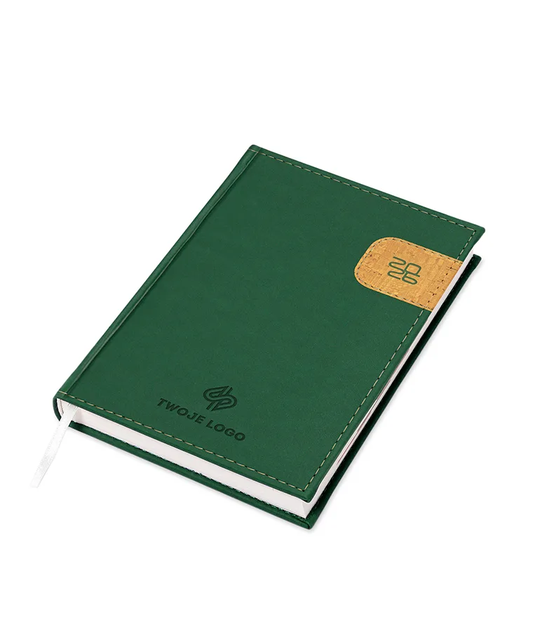 Kalendarz książkowy Patch A5 z logo to model kalendarza z oprawą łączoną , który zachwyca swoją oprawą soft touch z łatką z materiału imitującego korek . Posiada w wytłoczoną datę na okładce oraz proste narożniki, ten kalendarz jest nie tylko praktyczny, ale także elegancki.