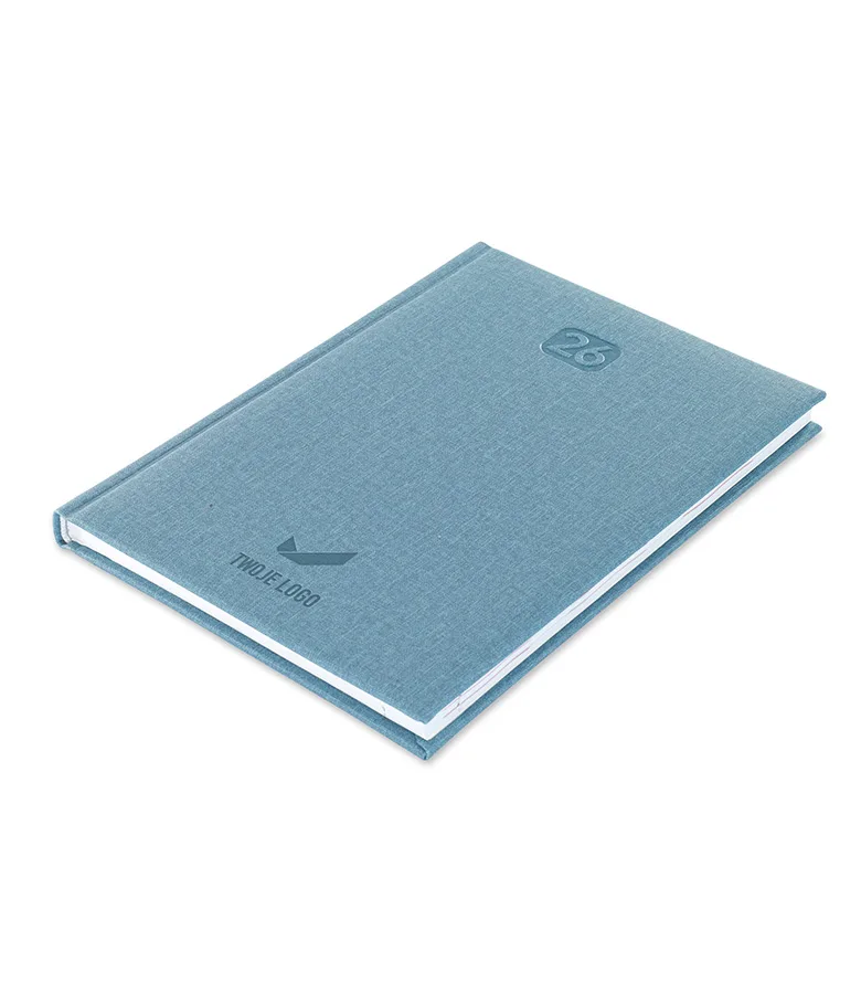 Kalendarz książkowy Ravenna A5 z logo to model kalendarza z oprawą z materiału przypominającego jeans. Oprawa  jest nieobszyta.