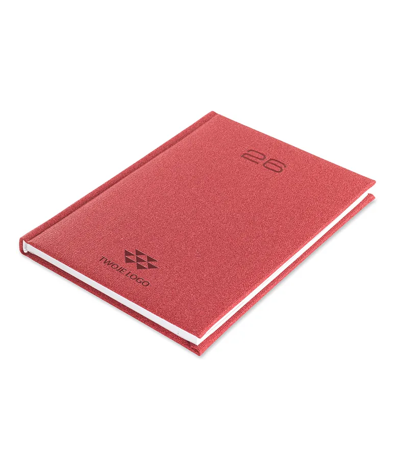 Kalendarz książkowy Savona A4 z logo to model kalendarza z miękką oprawą z wyraźnym deseniem grubego płótna (juty).