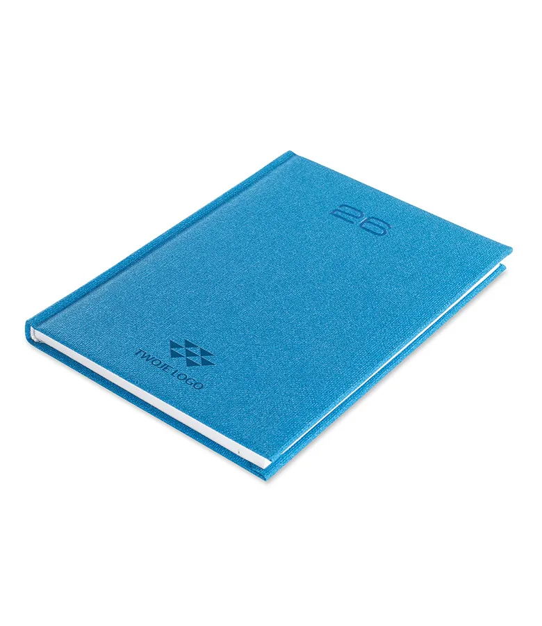 Kalendarz książkowy Savona A5 z logo  to to model kalendarza z miękką oprawą z wyraźnym deseniem grubego płótna (juty).