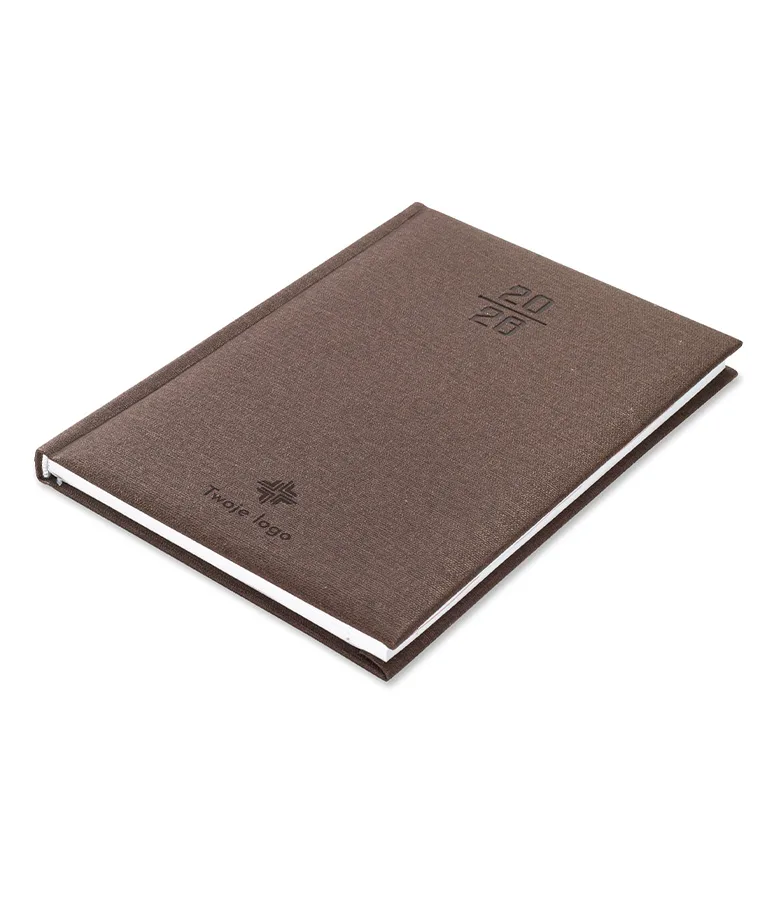 Kalendarz książkowy Trypolis B5 z logo to model kalendarza z oprawą  o bardzo ciekawej fakturze przypominającej tkaninę. Oprawa  jest nieobszyta.