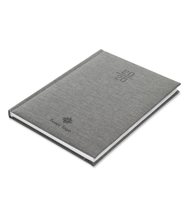 Kalendarz książkowy Trypolis B5 z logo to model kalendarza z oprawą o bardzo ciekawej fakturze przypominającej tkaninę. Oprawa jest nieobszyta.