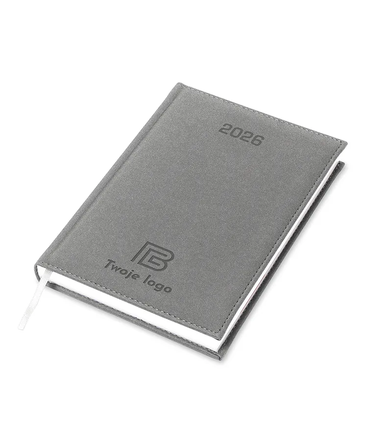 Kalendarz książkowy Velour A4 z logo to model kalendarza, który zachwyca swoją miękką w dotyku oprawą imitującą welur. Posiada w wytłoczoną datę na okładce oraz proste narożniki, ten kalendarz jest nie tylko praktyczny, ale także elegancki. Okładka obszyta nicią gwarantuje trwałość i wytrzymałość kalendarza.