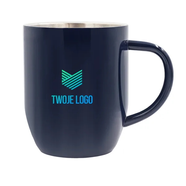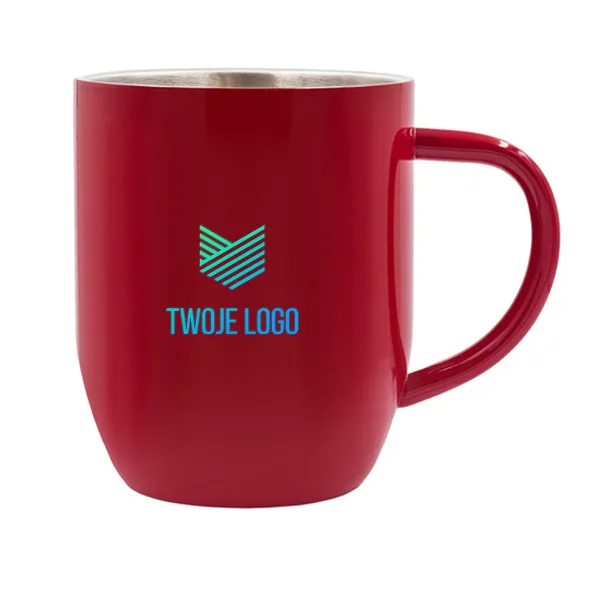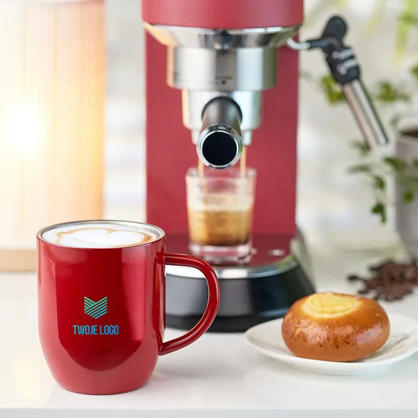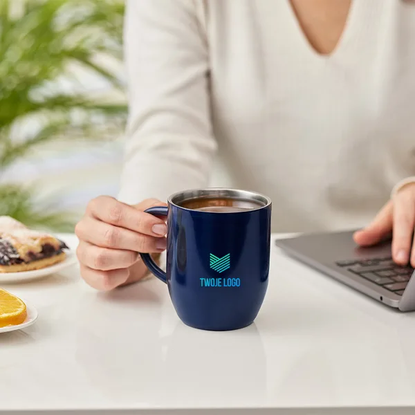 Kubek Stalowy z logo twojej firmy w trzech klasycznych kolorach: Czerwony, Niebieski, Biały, to idealny wybór dla Ciebie.