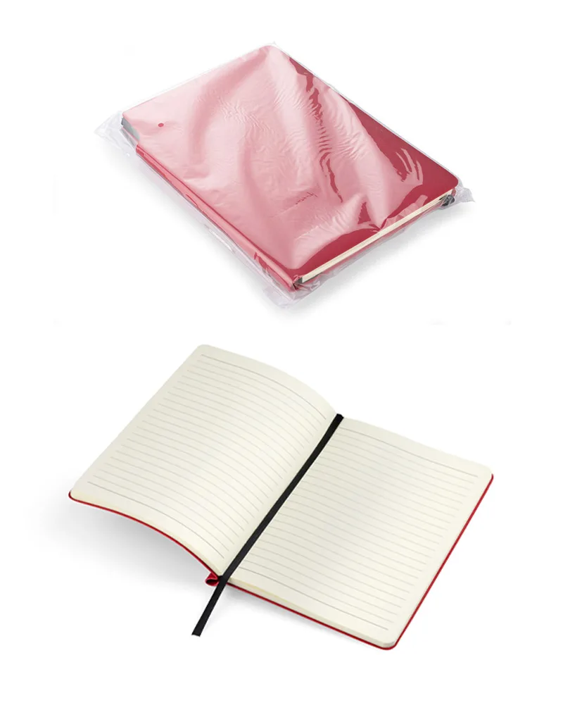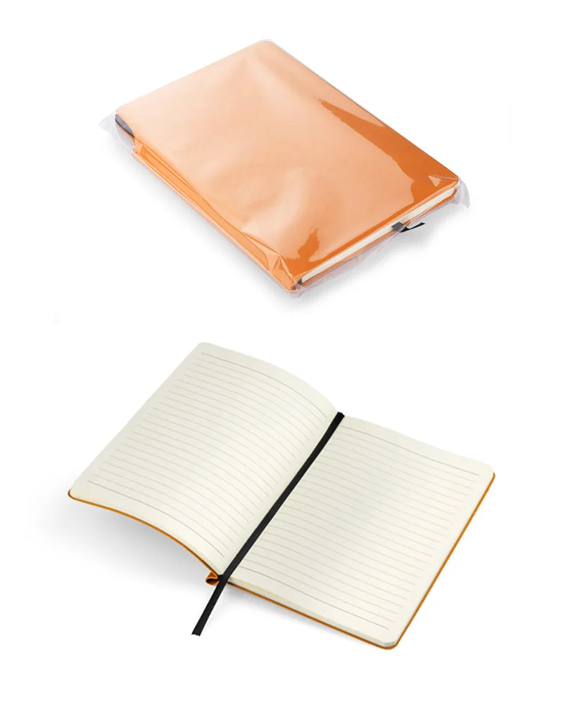 Notes formatu A5 w żywych, modnych kolorach. Notes zawiera 96 kartek w linie oraz praktyczną zakładkę – wstążeczkę. Okładka notesu wykonana z miękkiej ekoskóry, nieusztywniana. Wewnątrz grzbietu notesu ciekawie zaprojektowane miejsce na długopis.
