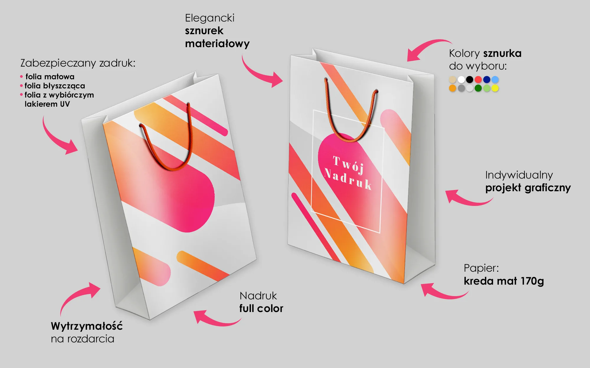 Torby Premium  drukowane są w całości według indywidualnego projektu graficznego.